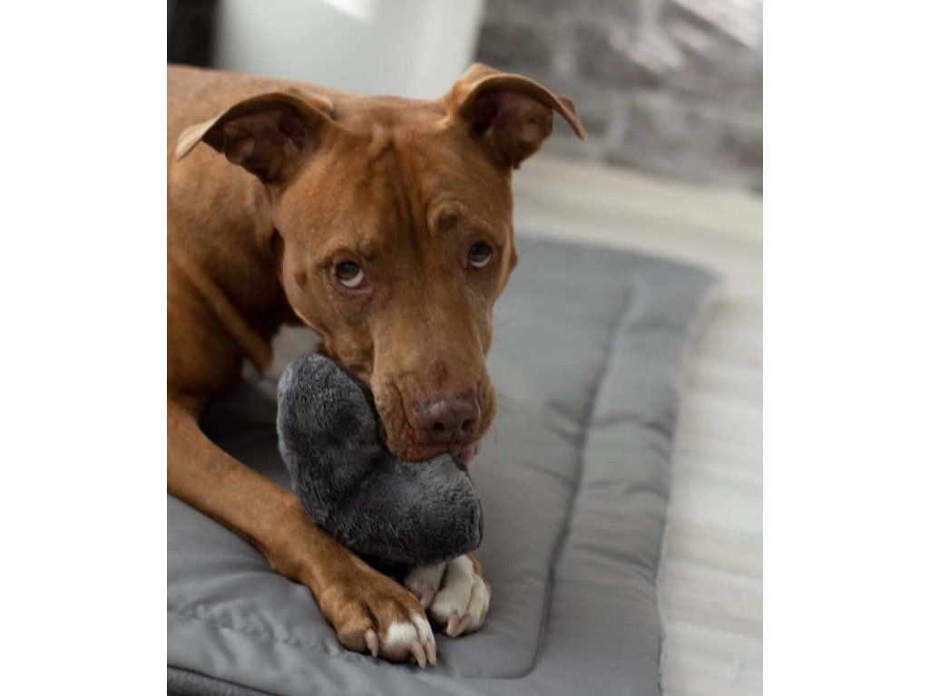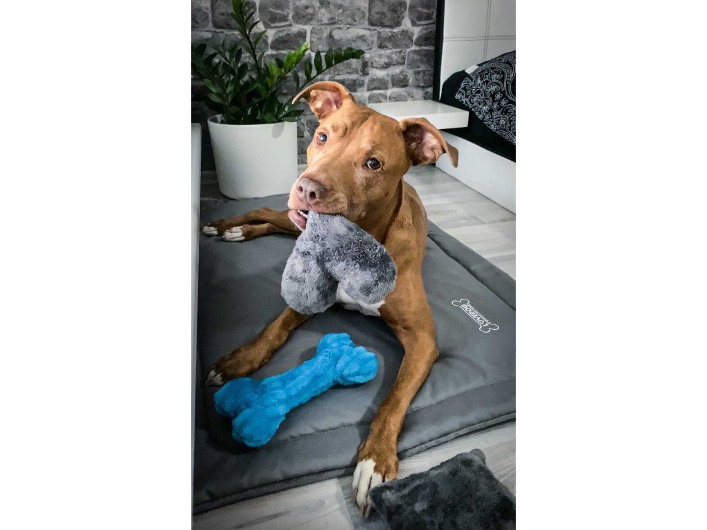 Možné využít jako hračku pro větší pejsky nebo jako polštářek do pelíšku pro malé pejsky. Jedna strana je hebká a semišová, druhá strana z voděodolné textílie. Antialergická výplň.